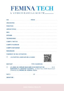 - Remplir le bulletin d’adhésion disponible en PJ. Vous pouvez adhérer en tant que “personne” ou en tant qu’entité (entreprise, association, auto-entreprise…).